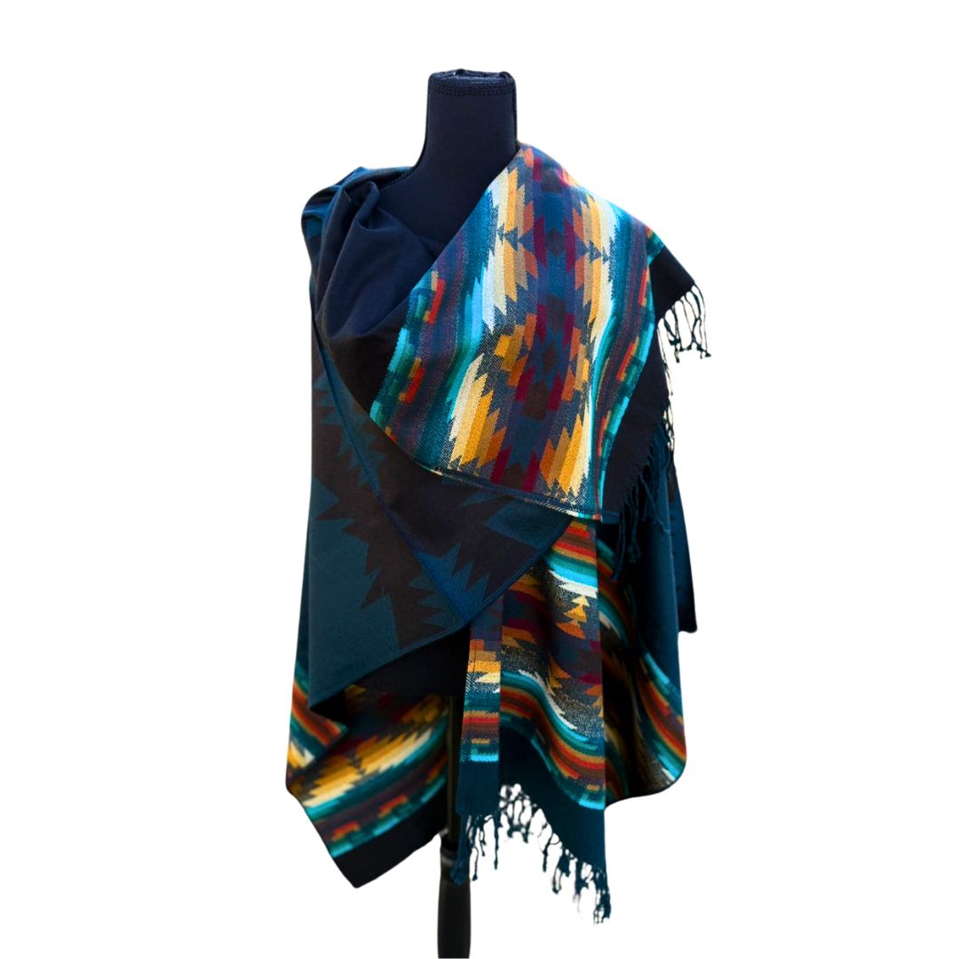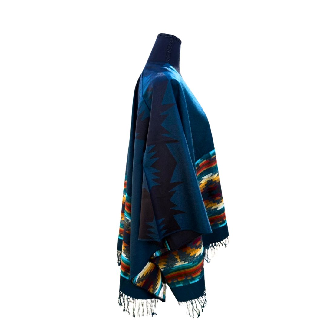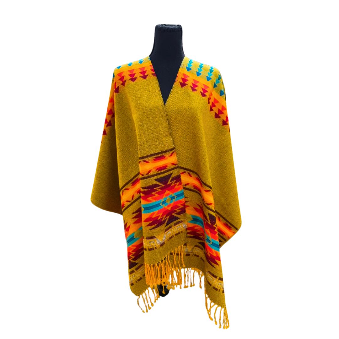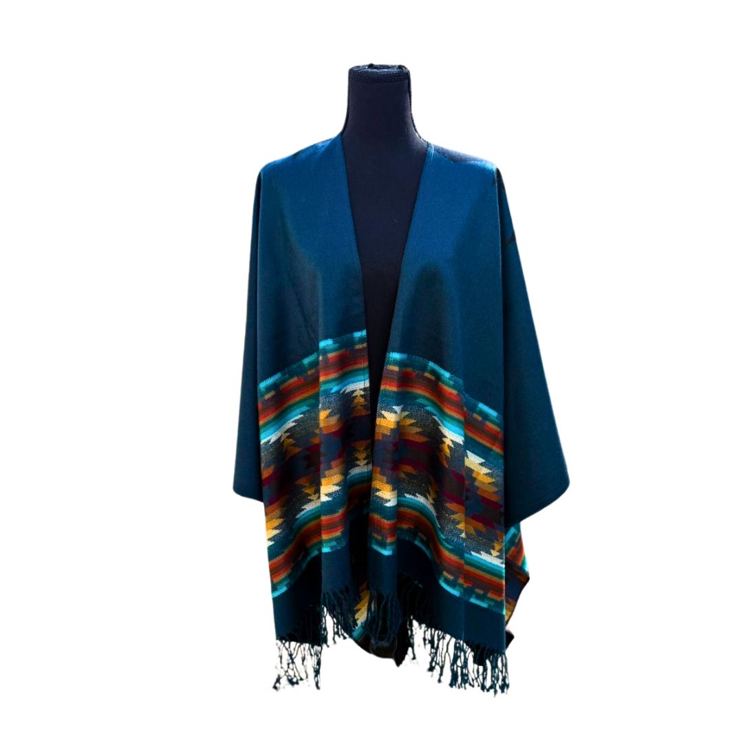 The Poncho Otavalo is a stunning representation of Ecuadorian craftsmanship, inspired by the rich textile traditions of Otavalo. Woven with high-quality fibers, it features vibrant geometric patterns that reflect Andean heritage. The open-front design and soft, warm fabric make it a versatile and comfortable piece for any occasion. Finished with delicate fringes, the Poncho Otavalo is perfect for adding a touch of cultural elegance to your wardrobe while supporting local artisans and sustainable fashion.